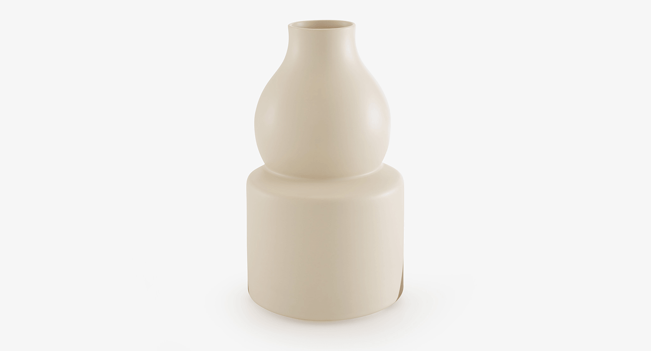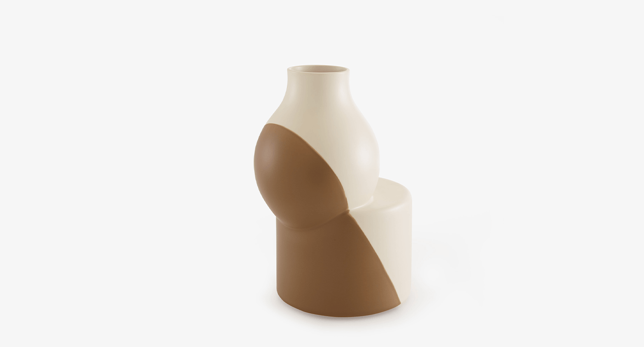 The Amalgame is a well-rounded vase. Made of caramel/ivory moulded earthenware.
